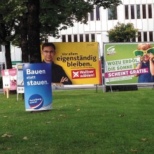 Ein Passant betrachtet gerade mal ein, zwei Sekunden ein Wahlplakat. Viel Zeit bleibt den Parteistrategen da nicht, potenziellen Wählern den jeweiligen Kandidaten und dessen Botschaft schmackhaft zu machen. Und trotzdem sind Wahlplakate auch heute noch essenziell – 40 Jahre nach jener Landtagswahl, die als die erste moderne ihrer Art gilt.