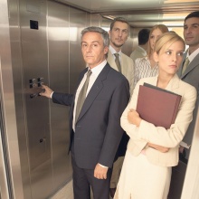 Die ersten Weihnachsteinkäufe liegen in den Einkaufswagen, logistische Meisterleistungen. Es ist Samstag, viel los hier, aber dennoch nur ungebrochene Stille und der kollektive Blick auf die Stockwerksanzeige.