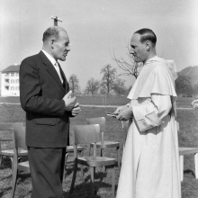 Dass George Pire (1910-1969), wie er mit bürgerlichem Namen hieß, sich zeitlebens für Flüchtlinge einsetzte, hat seinen Ursprung wohl in seiner Kindheit. Denn als 1914 die deutschen Truppen gegen Belgien vorrückten, musste seine Familie nach Frankreich flüchten und fand nach der Rückkehr vier Jahren später das verlassene Haus nur noch verkohlt vor. Mit 18 Jahren trat er in den Dominikanerorden ein, studierte in Rom und kehrte als Professor für Soziologie und Philosophie nach Belgien zurück. 1938 begann das soziale Engagement Pater Pires, das sich dann ab 1949 ganz auf die Problematik der Flüchtlinge in Europa konzentrierte. Nach dem Gewinn des Friedensnobelpreises 1958 erweiterten sich seine Aktivitäten bis nach Pakistan, wo er im ländlichen Raum Hilfe zur Selbsthilfe initiierte.